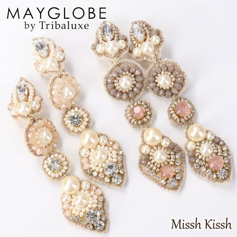 人気のデザイン!大ぶりのビジュ―と繊細なビーズ刺繍が美しい、ロングタイプのピアス/イヤリングです。 華やかに輝くのでウェディングアクセサリーとしてもおすすめ。 裏側にはレースとブランドプレートが施され、ディテールまでこだわったデザインです。