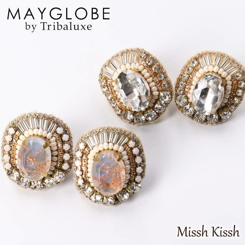 中央のビジュ―のまわりには繊細なビーズ刺繍がちりばめられ、動きに合わせてキラキラと上品に華やかに輝きます。