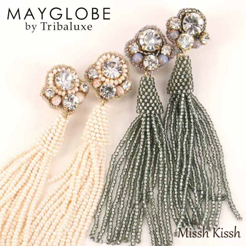 華やかなビジューモチーフに、人気のビーズタッセルがゆらゆらと揺れます。トレンド感満載でコーデの主役になってくれるアイテムです。
