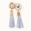 ビジュー刺繍モチーフとビーズタッセルでデザインされたのロングタイプのピアス/イヤリングです。
