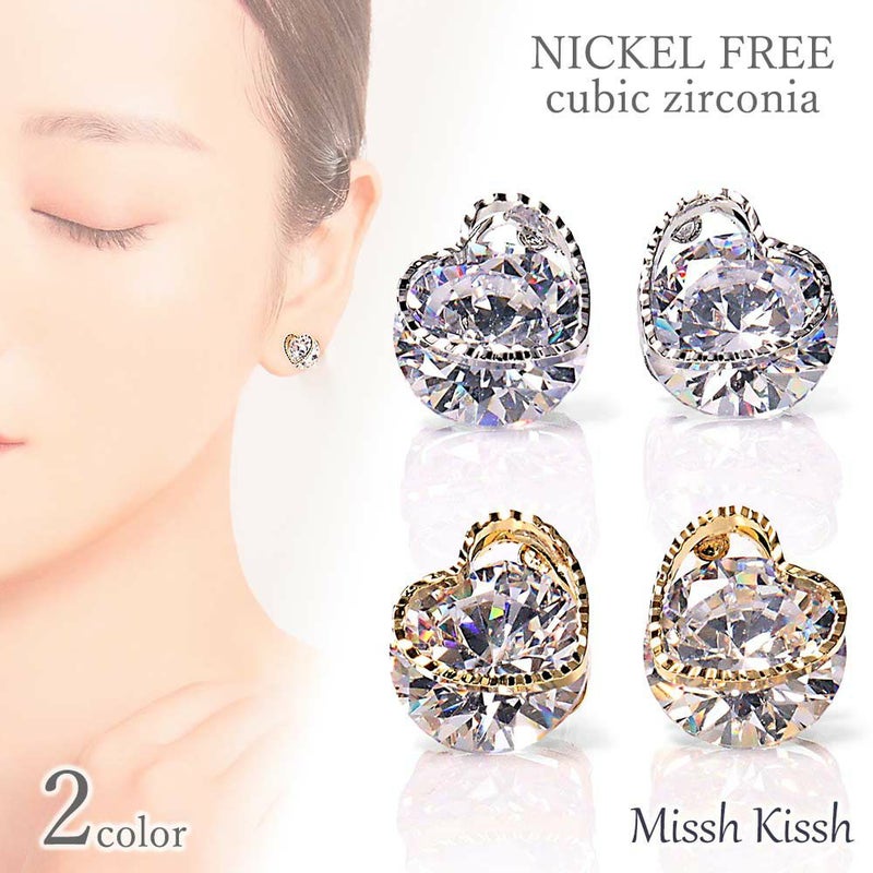 シンプルで美しいキュービックジルコニアを使用したピアスです。 ハートのフレームに挟まれたストーンがキラキラと輝き美しいデザイン。 1粒ピアスに見えますが、よく見るとハートのモチーフデザインというさりげなさが大人の女性にも着けやすくおすすめです。 オフィスから普段使い、フォーマルの場まで幅広く活躍してくれます。 素材は真鍮でニッケルフリーなのでアレルギーのある方にもお使いいただけます。 ※すべての方にアレルギーフリーを保証するものではございませんのでご注意ください ダイヤモンドにもひけをとらない人気のジルコニアは、見る角度によってキラキラと美しく輝きます。