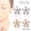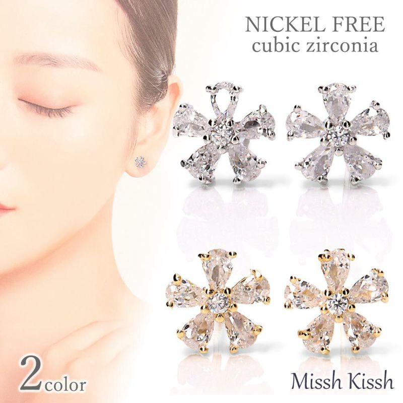 シンプルで美しいキュービックジルコニアを使用したピアスです。ダイヤモンドにもひけをとらない人気のジルコニアは、見る角度によってキラキラと美しく輝きます。 小粒の花のデザインがシンプルで使いやすいデザイン。 小さいサイズのシンプルなピアスなので、オフィスから普段使い、フォーマルの場まで幅広く活躍してくれます。 素材は真鍮でニッケルフリーなのでアレルギーのある方にもお使いいただけます。 ※すべての方にアレルギーフリーを保証するものではございませんのでご注意ください