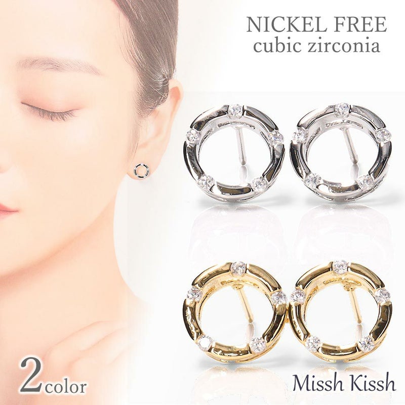 シンプルで美しいキュービックジルコニアを使用したピアスです。 素材は真鍮でニッケルフリーなのでアレルギーのある方にもお使いいただけます。 ※すべての方にアレルギーフリーを保証するものではございませんのでご注意ください ダイヤモンドにもひけをとらない人気のジルコニアは、見る角度によってキラキラと美しく輝きます。 サークル型の小さいサイズのシンプルなピアスなので、オフィスから普段使い、フォーマルの場まで幅広く活躍してくれます。