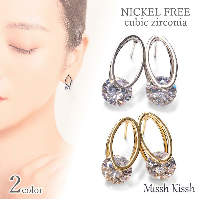 シンプルで美しいキュービックジルコニアを使用したピアスです。 素材は真鍮でニッケルフリーなのでアレルギーのある方にもお使いいただけます。 ※すべての方にアレルギーフリーを保証するものではございませんのでご注意ください ダイヤモンドにもひけをとらない人気のジルコニアは、見る角度によってキラキラと美しく輝きます。 オーバル型のフレームにキラリと輝く1粒のストーンのデザインは、普段使いからフォーマルの場まで幅広く活躍してくれます。