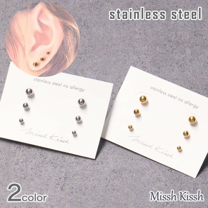 5mm4mm3mmと大きさ違いのボール型ピアスの3セット(6個)の商品です。