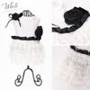 ふんわりレースが重なったスカートに胸元と肩にベルベットのローズが付いたロリータ風ワンピースです。
