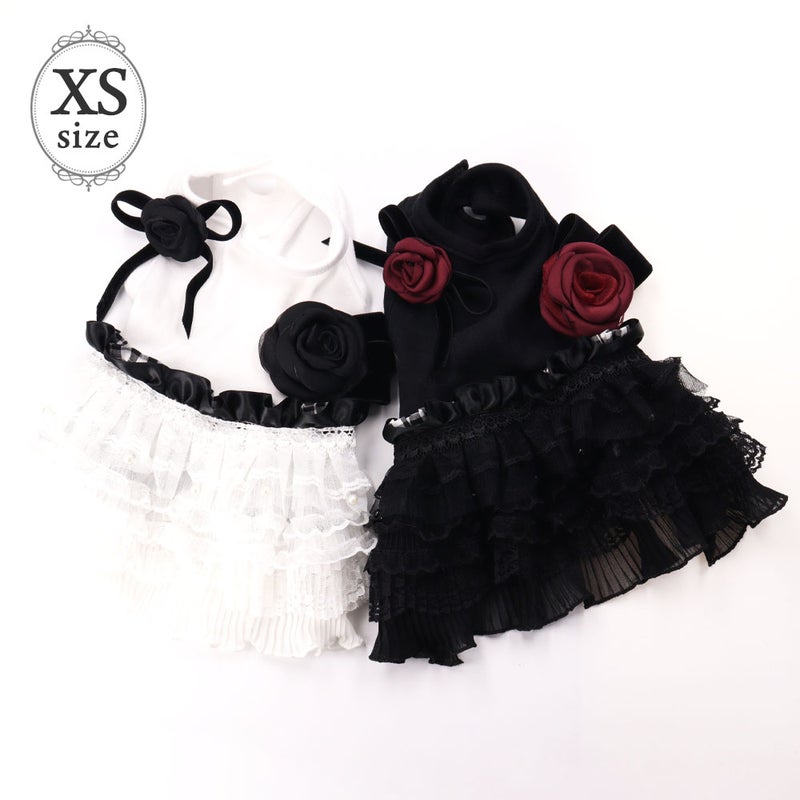 ふんわりレースが重なったスカートに胸元と肩にベルベットのローズが付いたロリータ風ワンピースです。