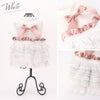 ふんわりレースが重なったスカートに胸元と肩にベルベットのローズが付いたロリータ風ワンピースです。