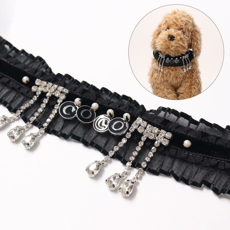 黒のベルベットとレースの生地にフリンジがキラキラ揺れる豪華なチョーカーです。