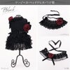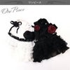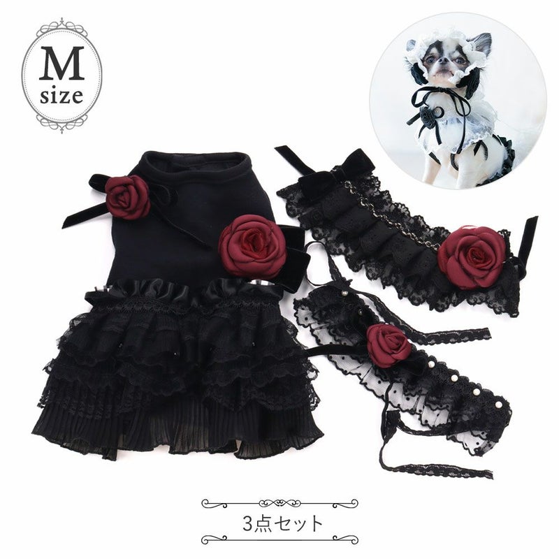 バラの花とベルベットのリボン飾りが華やかなワンピース、ヘッドドレス、つけ襟のシリーズです。