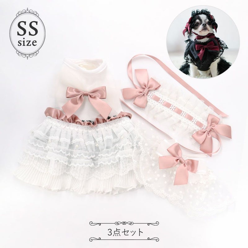 ワンピース、ヘッドドレス、つけ襟の3点セットです。