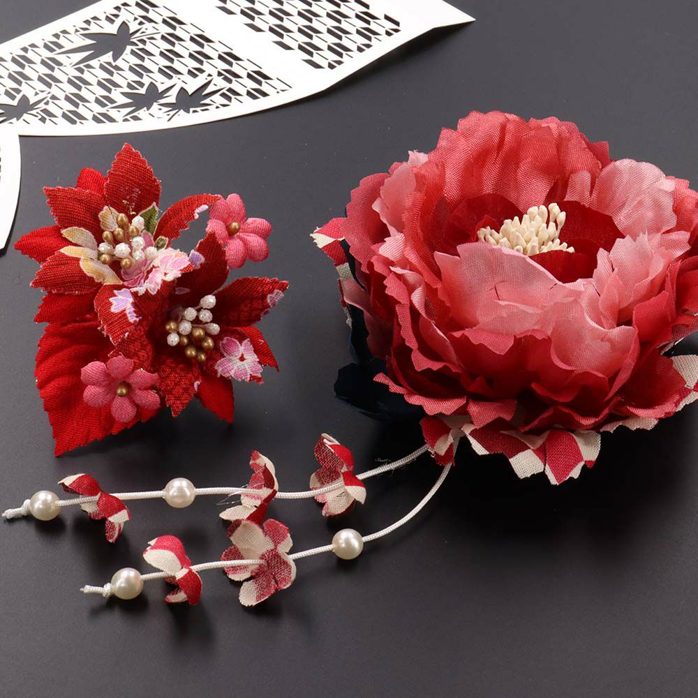 楓の栞り 花びら下がりの和柄2輪コサージュセット