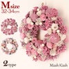 | カラー/タイプ | A-濃いピンク。まつぼっくりもピンクに染め、ラメをあしらったピンクづくしのデザイン。インパクト大。 B-薄いピンク。やさしいパステルピンクに緑をあしらった、ナチュラルな印象のデザイン。人気のリースです。 |
