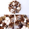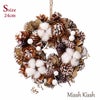 | 特徴 | 物のまつぼっくりをふんだんに使用した ナチュラルテイストのリース。 雪化粧のようなふわふわのコットンが印象的で かわいいデザインです。 |