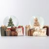 プレゼントやツリーに囲まれたテディベアがかわいい、コンパクトサイズのスノードーム。