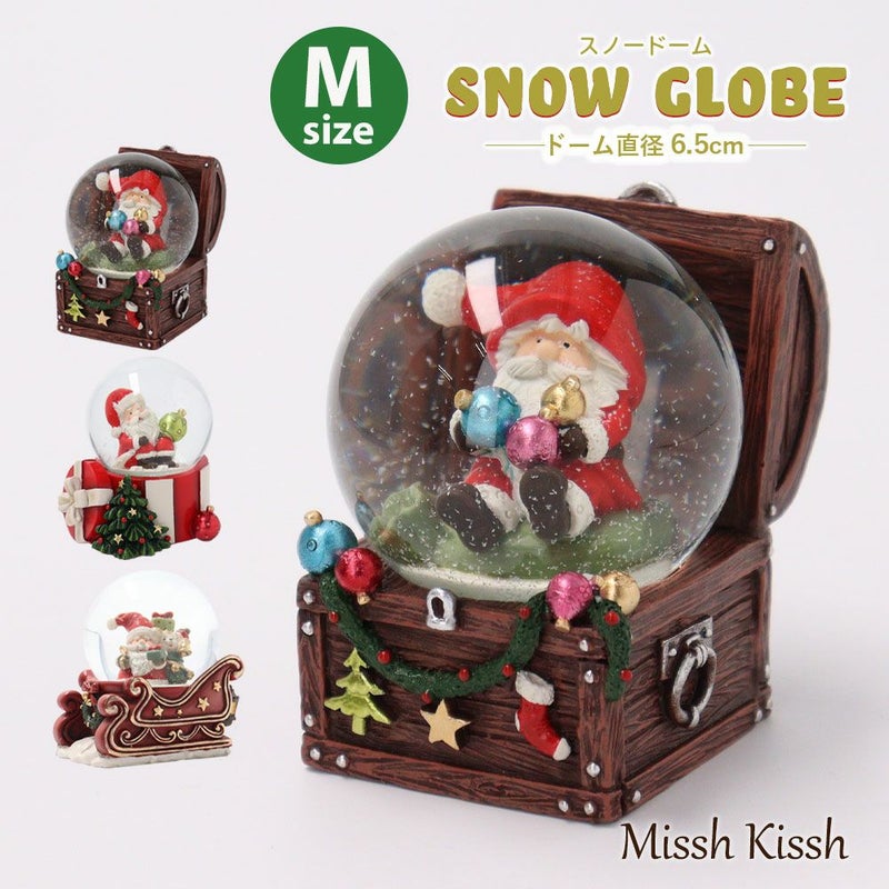 キュートなクリスマスらしい土台に乗ったサンタクロースのスノードームです。