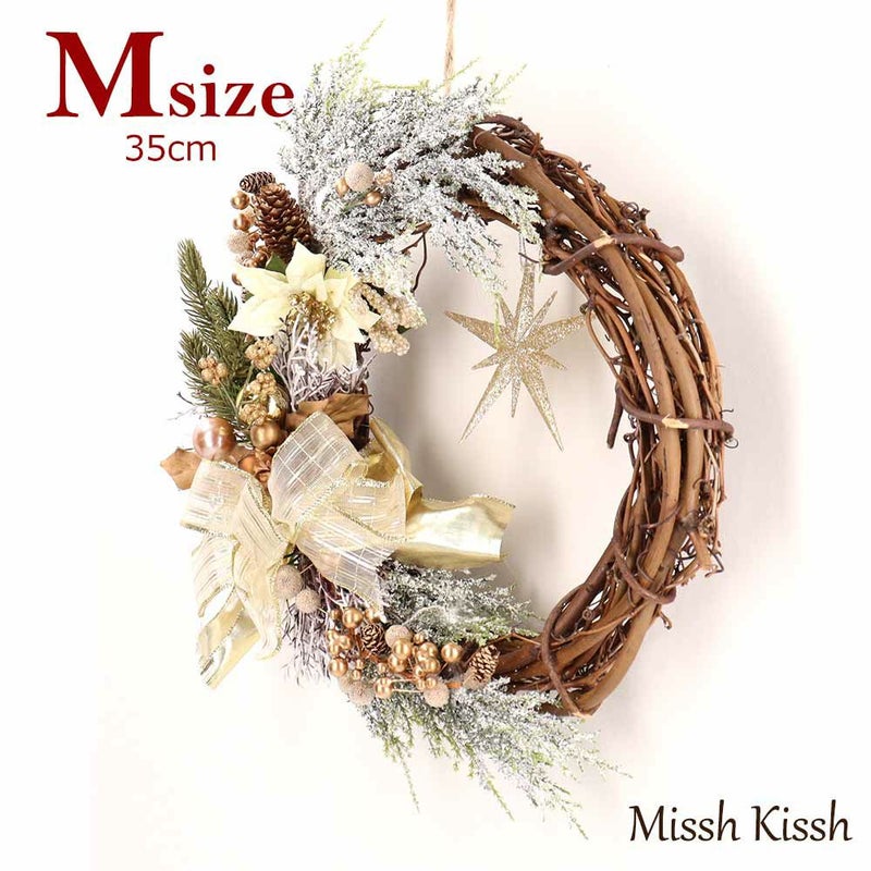 真ん中に下がった星が印象的なデザインのリースです。 自然素材の土台にリボンやお花がとても素敵です。 |