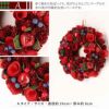 【A】赤く染めた松ぼっくり、花びらとりんごにパープルの木の実が印象的な赤いリースです。 【B】赤く染めた松ぼっくり、バラの花とりんごに金の木の実が印象的な真っ赤なリースです。 |