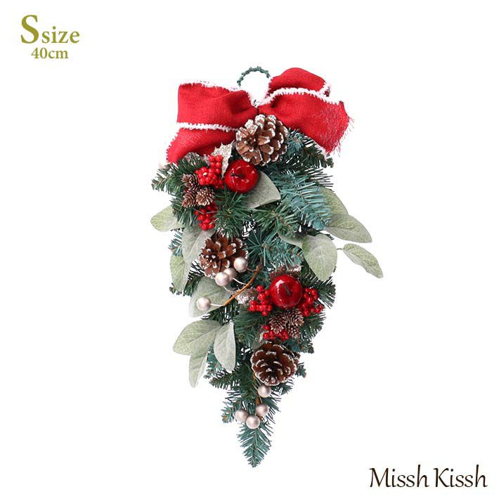 大きいリボンがかわいいスワッグです。 クリスマスカラーが華やかに演出します。 贈り物にもおすすめです。 |
