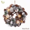 ギンガムチェックのリボンとゴールドスターの飾り、スノーパウダーがかわいいリースです。 店舗の飾りにもおすすめです。 |
