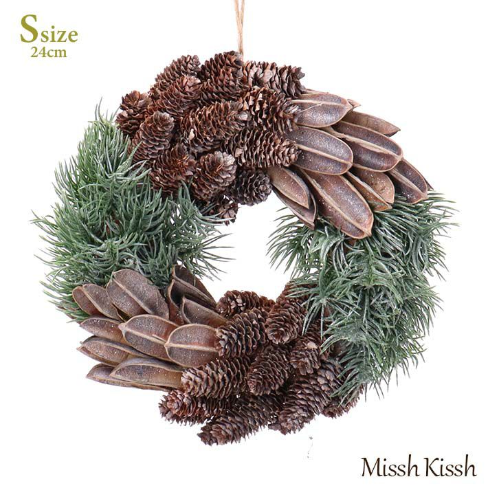 自然の素材をたっぷり使用したシックなリースです。 店舗の飾りにもおすすめです。 |