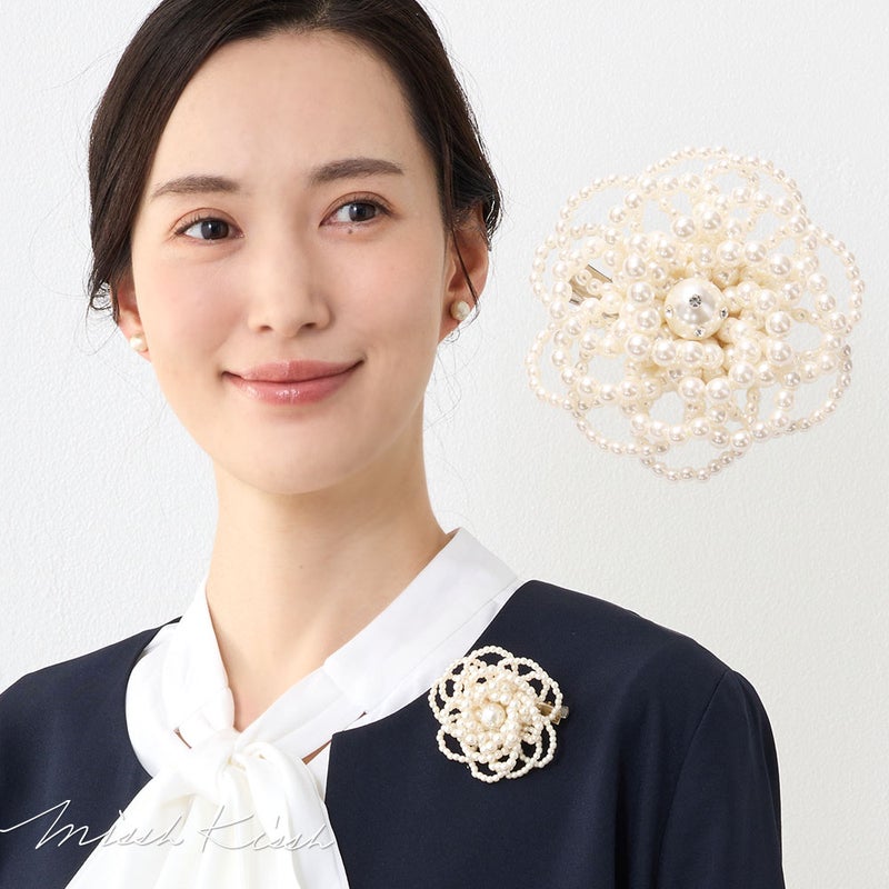 大きさを少しずつ変えて花の形にデザインしたパールブローチです。