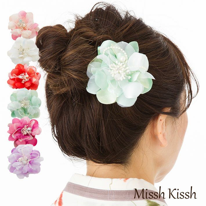 丸みのある1輪シルエットはヘアーだけでなく、帯やバッグにも合わせやすく、スタッフオススメの1品です♪